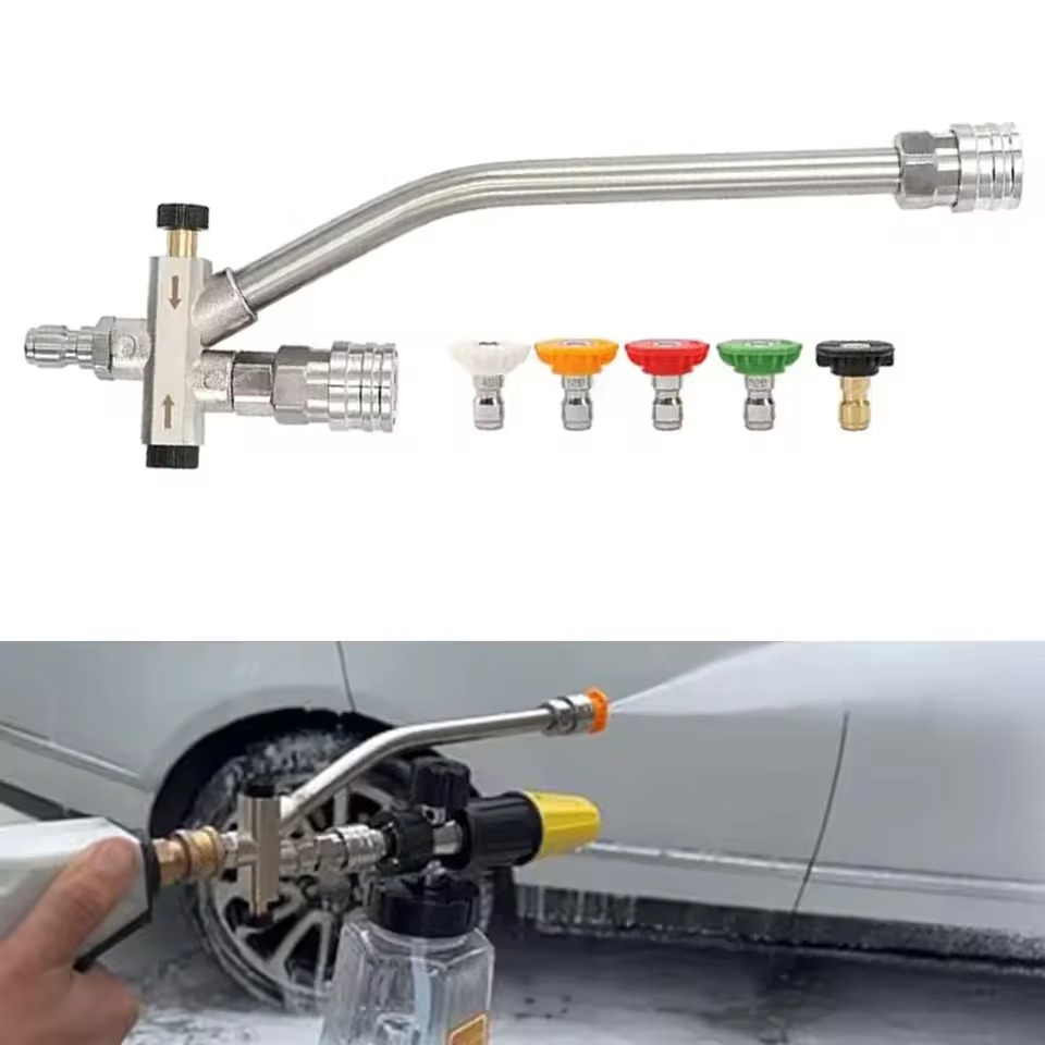 This 2-in-1 high-pressure car wash nozzle accessory can switch between straight-on and fan-shaped modes, easily removing stubborn stains, saving water and effort, making car washing and yard cleaning more efficient and convenient.
